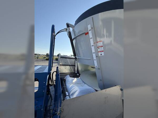 Penta 6040 twin screw 600 cu. ft mixer, right side 3′ flip up conveyor.